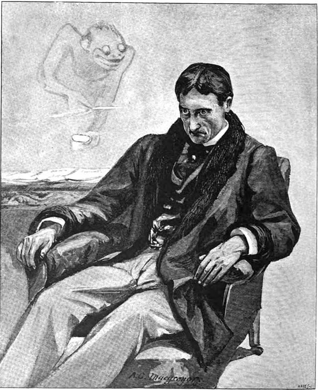 In the grand finale of Disneyland's famous Haunted Mansion, a ghost sits next to you. Here's an illustration from an 1891 issue of The Strand magazine. The caption reads: "Haunted." [This one's dedicated to our friend at Long-Forgotten, who ruminates fascinatingly on the eccentric masterpiece that is the Haunted Mansion.]