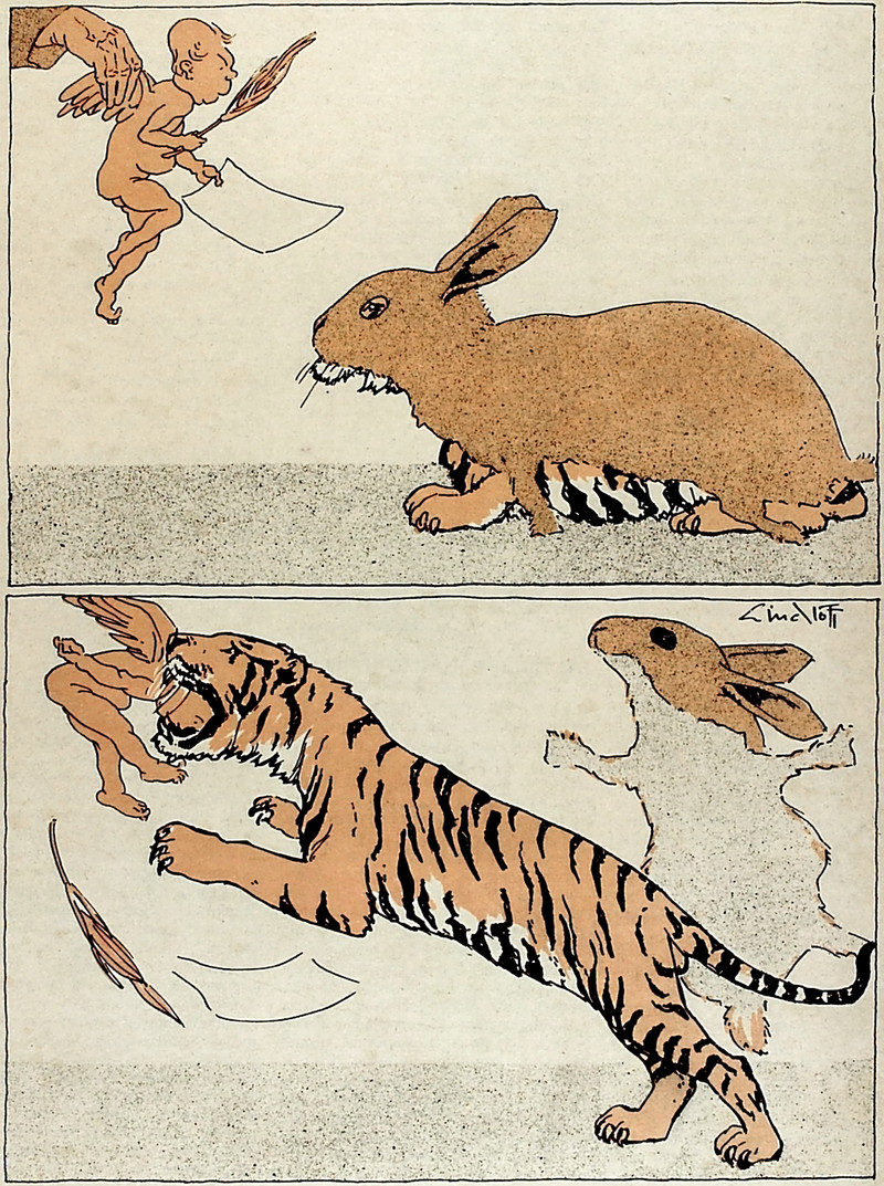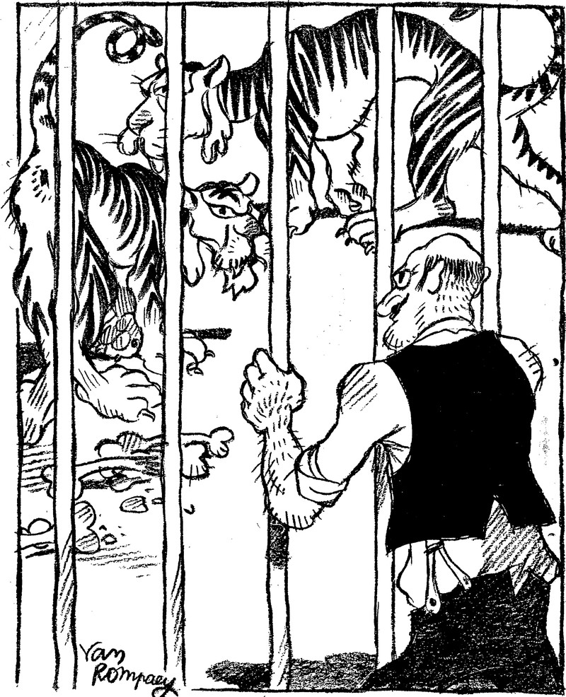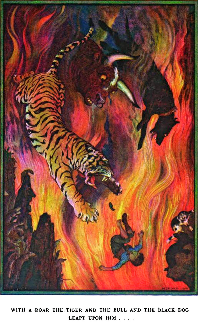 We've had days like this. "With a roar the tiger and the bull and the black dog leapt upon him." From Pilot, and Other Stories by Harry Plunket Greene, 1916.