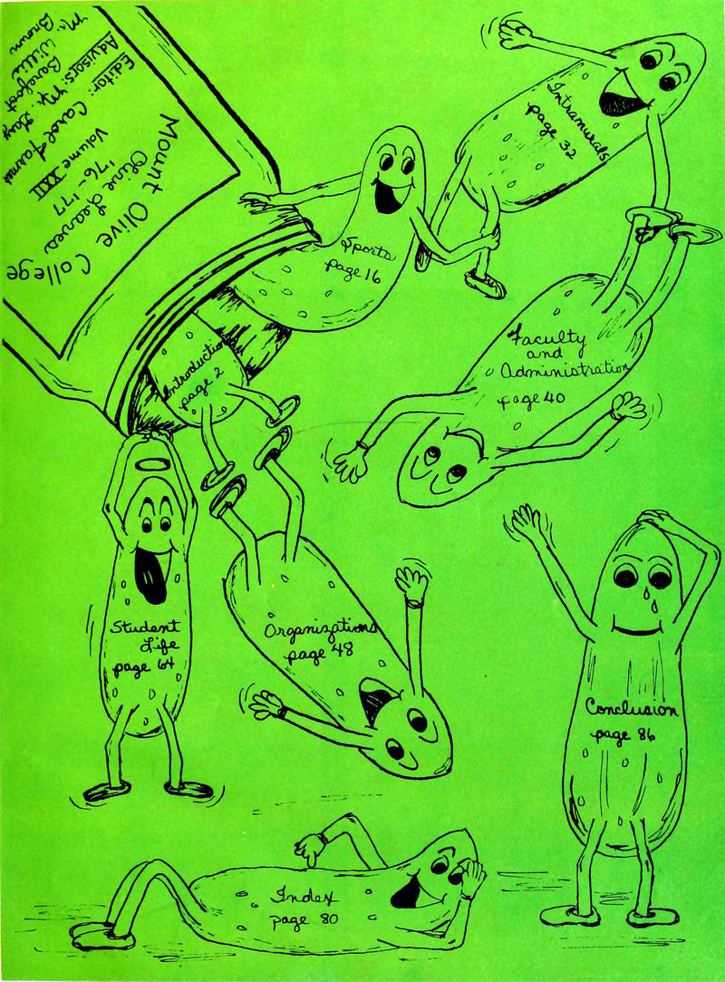 Table of contents from Mount Olive's 1977 yearbook.