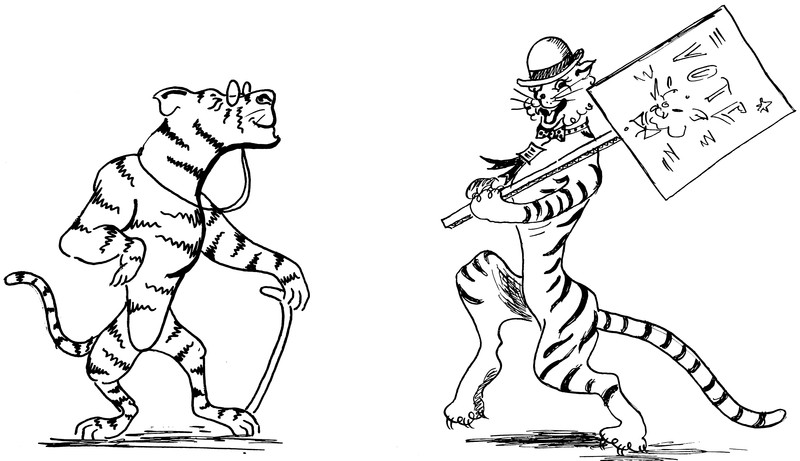 Lynx versus squirrel: which would you wager to win? From Tiny Red Squirrel by James Douglas Williams, 1919.