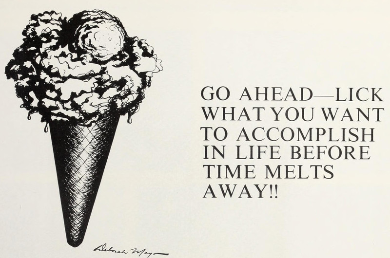 #vintage illustration #vintage yearbook #yearbook #ice cream #advice #1970s #illustration