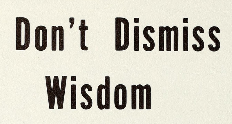 Though we don't like being told what to do, this is probably good advice.  "Don't dismiss wisdom."  From the University of Detroit's 1963 yearbook.