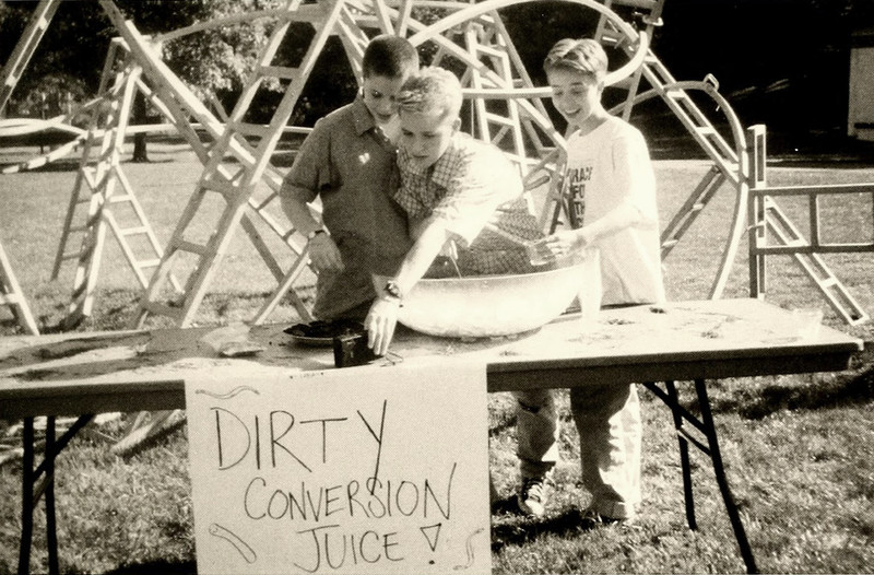 "Dirty conversion juice" is a Googlewhack to this day.  From Chatham College's 1996 yearbook.