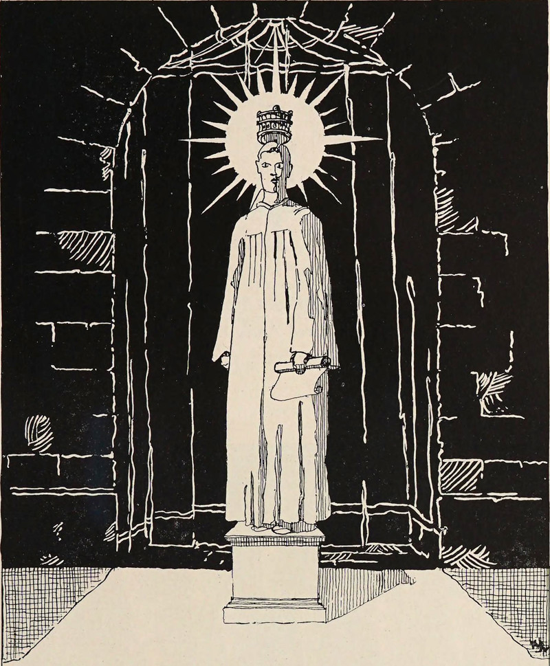 #vintage illustration #crown #vintage yearbook #halo #yearbook #statue #1920s #illustration