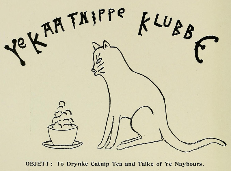 #vintage illustration #cat #vintage yearbook #yearbook #tea #illustration #catnip