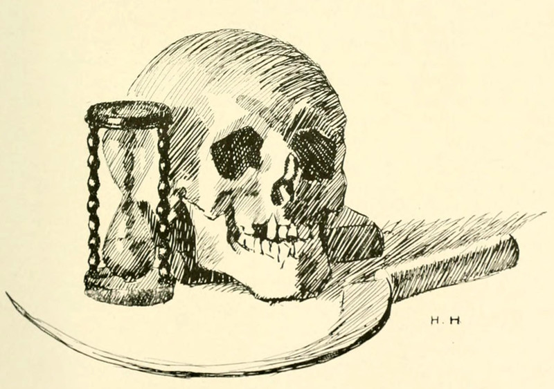 #vintage illustration #hourglass #skull #vintage yearbook #yearbook #sickle #1900s #illustration