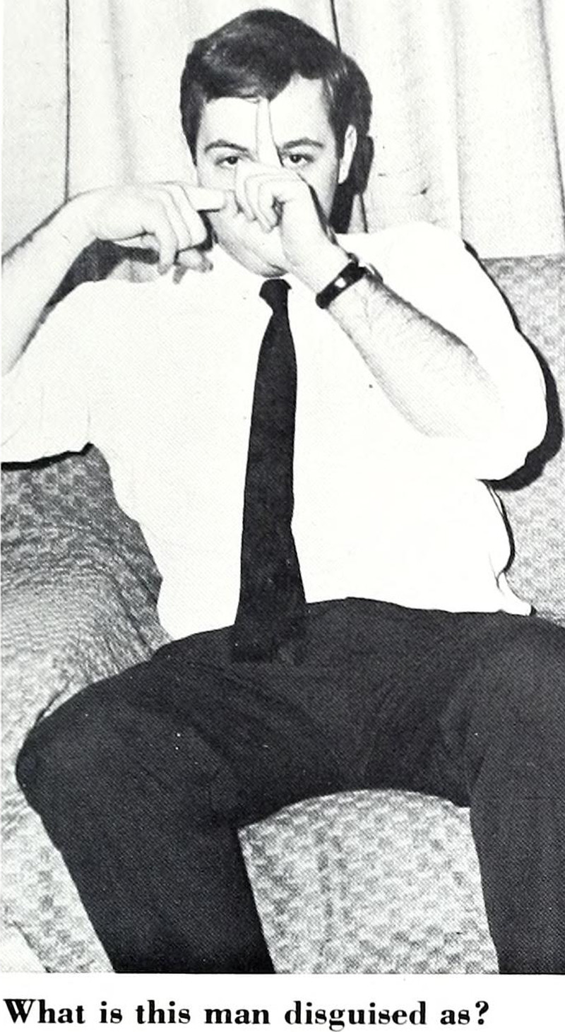 She's apparently recycling her empty Stroh's beer cans into her library's book return slot. And it's her official yearbook portrait. From Queens College's 1973 yearbook.
