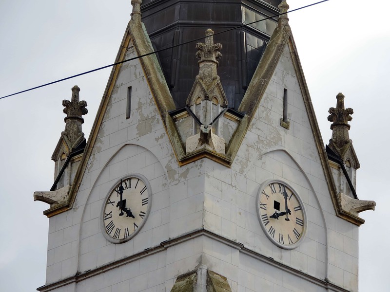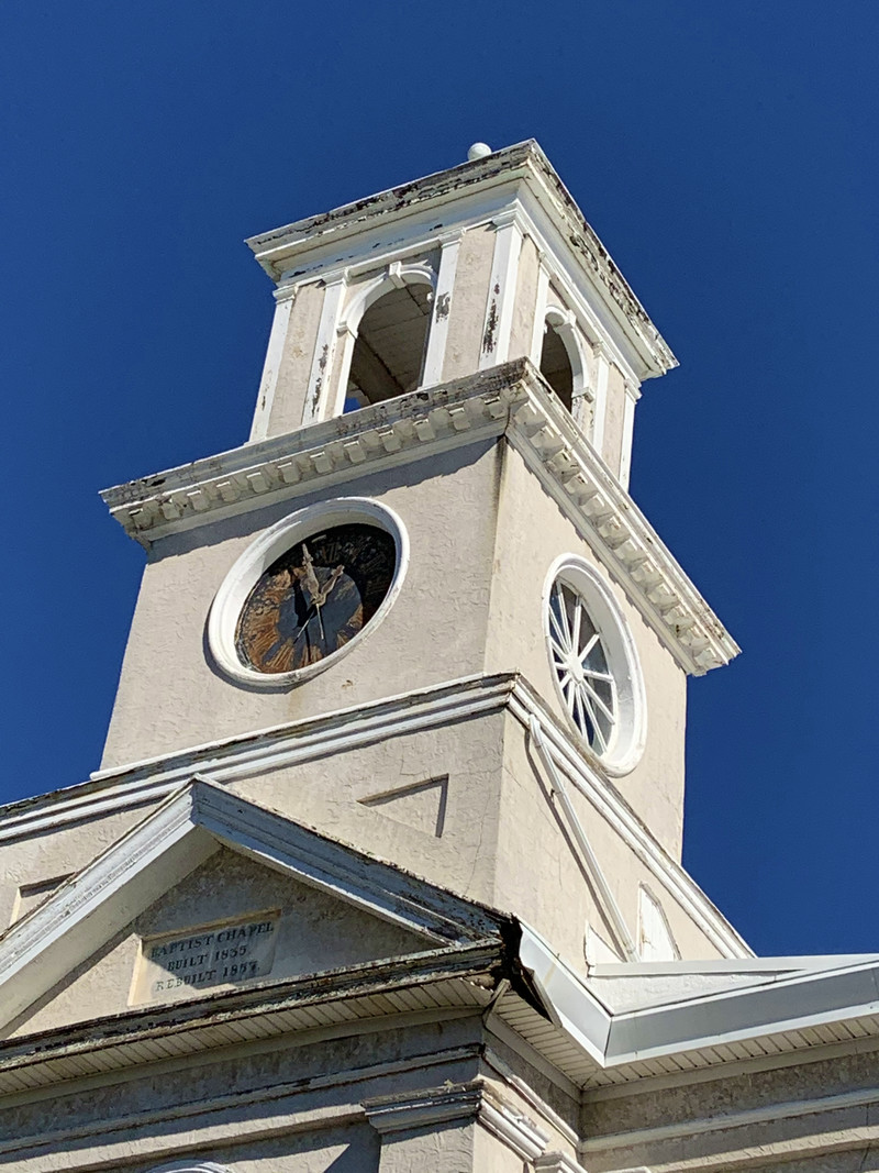 We encountered and determined the cause of a temporal anomaly in Chestnut Hill, Pennsylvania. The clock tower of the Chestnut Hill Baptist church (whose motto, ironically, is "a historic church with a timely message") displays faces with three incorrect times. As constant investigators of such phenomena, we diagnosed the source of the problem at a glance. An oculus window replaces the clock face on the fourth side of the tower and is the cause of the trouble. The architect presumably sought to save a quarter of the cost of clockwork, and while three-quarter time may keep waltzes spinning, such an imbalance in a clock tower is its own death knell. Though the cause is simple enough, great mysteries yet abound, for precisely why does a window into the nature of time trigger a standstill?
