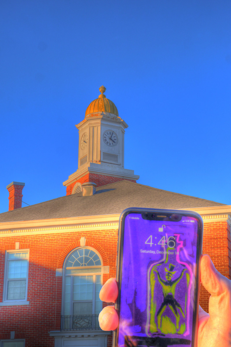 We encountered and determined the cause of a temporal anomaly in the quaint Victorian downtown of Van Buren, Arkansas. The courthouse clock tower displays two times, only one of which is correct. As constant investigators of such phenomena, we traced the source of the problem almost immediately. Directly below the clock face that announced the wrong time, and next to the 1820 schoolhouse where the prominent Freemason Albert Pike first taught, there is a sundial with a broken pointer. That is the cause of the clock tower's divergence, magnified by the sundial's proximity to one of the oldest standing buildings in Arkansas. Though the cause is simple enough, great mysteries yet abound, for the nature of time itself is shrouded. And what, perchance, do the Freemasons have to do with this particular enigma?