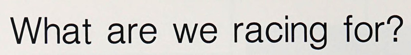 "What are we racing for?"  From David Lipscomb College's 1988 yearbook.
