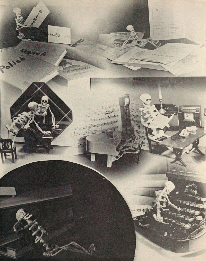 #vintage illustration #skeleton #vintage yearbook #yearbook #1940s #illustration