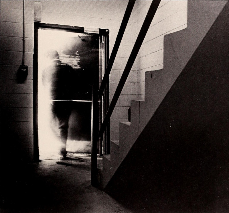 This haunted photograph appears in Taylor University's Ilium yearbook of 1991. Why are glowing lights so ghostly? We explored the answer in the context of this other ghostly photo.