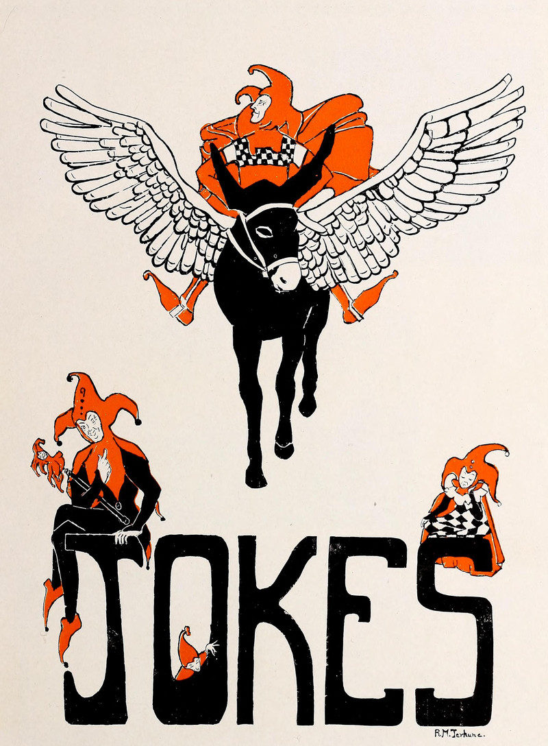 #vintage illustration #jester #vintage yearbook #yearbook #illustration #winged donkey #1910s