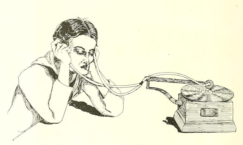 #vintage illustration #vintage yearbook #yearbook #1900s #illustration #record player #headphones