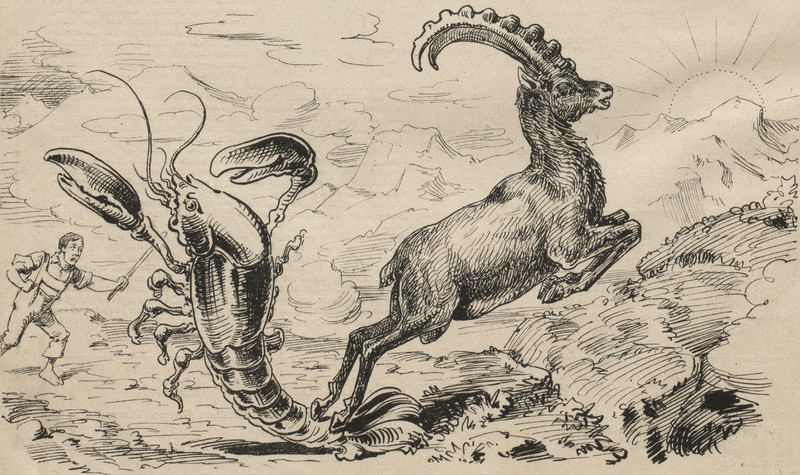 #vintage illustration #goat #horns #lobster #mountain goat #giant lobster #antelope
