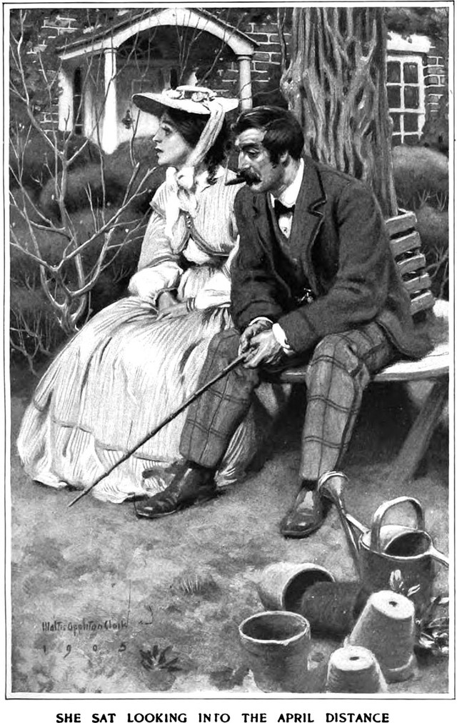 An illustration from a 1904 issue of Harper's magazine.  The caption reads: "She sat looking into the April distance."