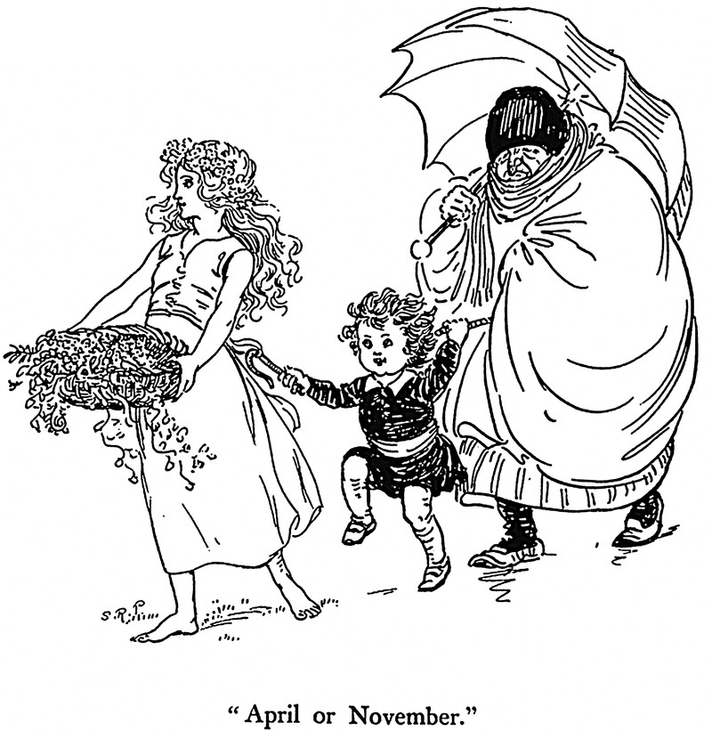 April or November.  From The Child's Picture Grammar, written and illustrated by Sophia Rosamond Praeger, 1900.