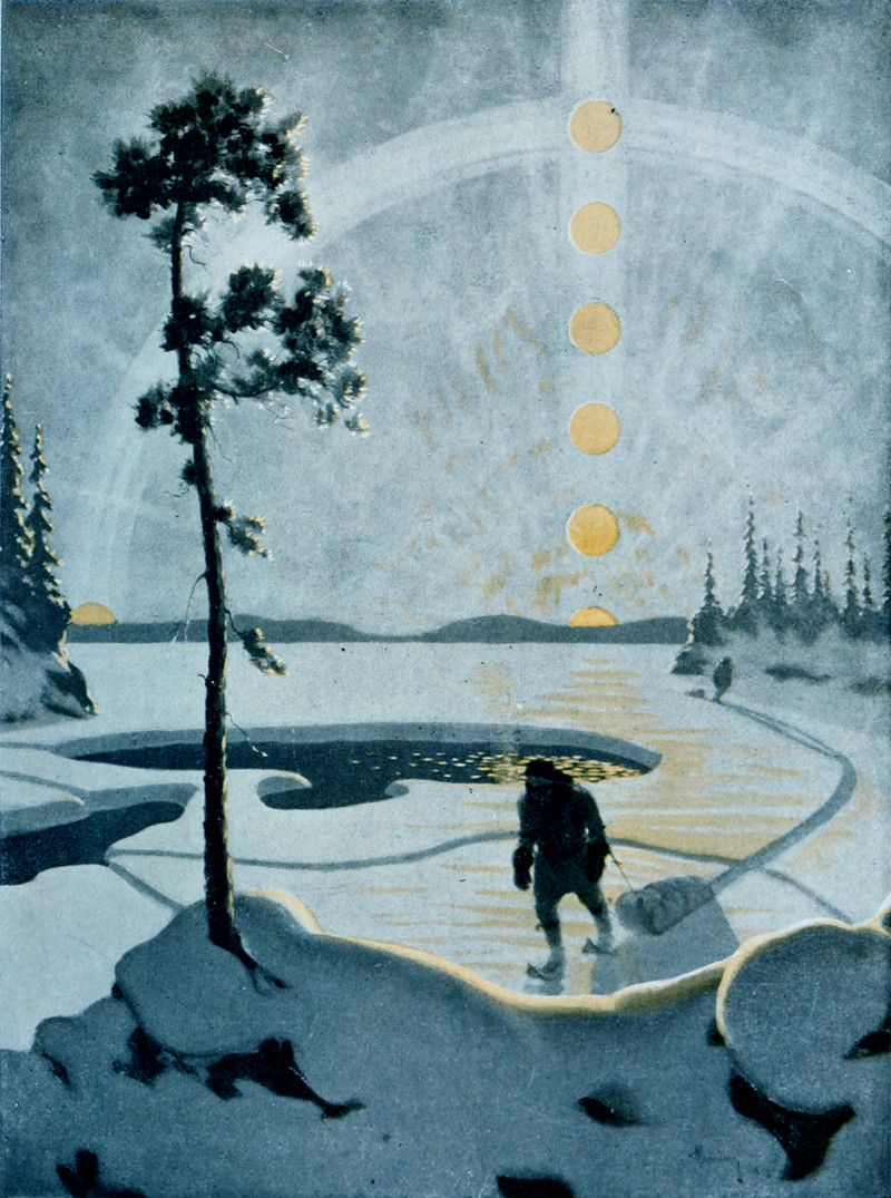 Polar bear versus wolf: which would you wager to win? From American Fairy Tales by Garrett Brown and illustrated by John Edward O'Keeffe, 1911.