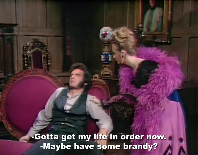 Unintuitive advice from Dark Shadows: brandy gets your life in order, tea is restful, coffee calms the nerves, sedatives are called for when there's nothing wrong, and taking your medicine will get people to stop staring at you. However, gypsy herbs aren't prescribed willy nilly. From episodes 881, 887, 897, 339, 791, 825, and 466.