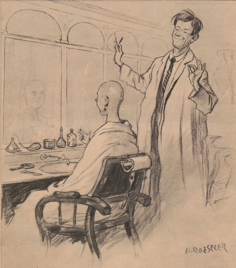 #vintage illustration #hairdresser #bald #shaved head #beauty parlor