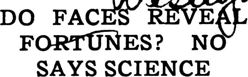 The magazine that glamorized big game hunting and the clubbing of seals for their fur (not to mention poaching eggs from critically endangered species—for merely one example, see "Youth Fights Condor to Win Thousand-Dollar Egg" from the Nov. '29 issue, in which the condor's near-extinction is noted), promoted smoking, considered rainforests to have "no practical purpose," and predicted that blimps would end of war and disease by the year 2000 ... this same magazine was smugly skeptical of physiognomy. Hence, we're less skeptical of physiognomy than ever before. From 1928.