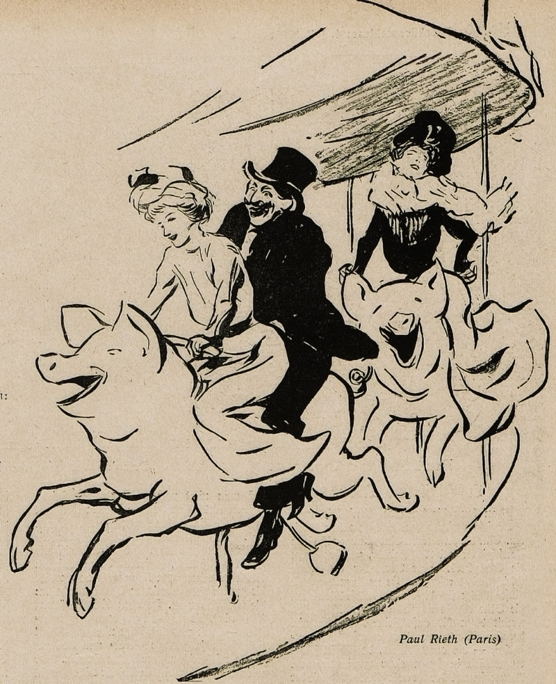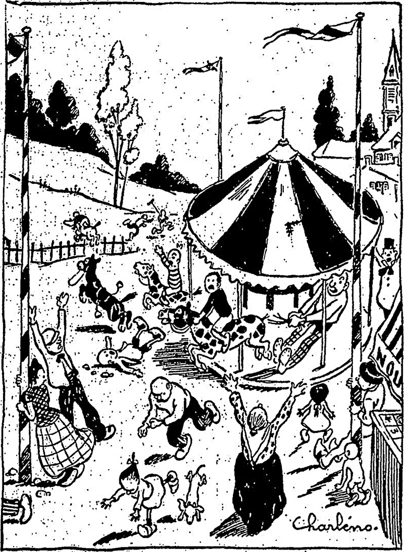 From Mocca, 1933. This other image makes an interesting pairing, with death at the top playing music and people moving in a circle below (though not on swings).