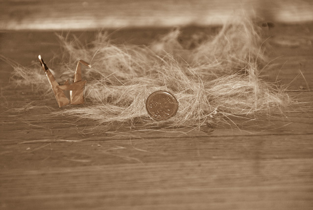 Dustbunny (with origami and coin) by greendragonflygirl.