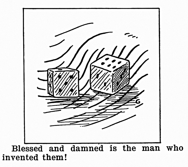 We did a Google search on the phrase "exhausted by prayer." Only a dozen results came up, and only one that actually charmed and intrigued us, involving an unlikely pair of dice: