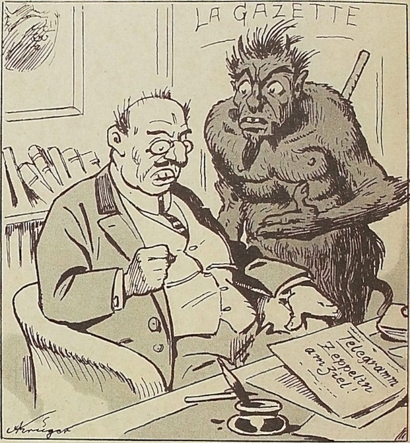 One of these ladies is wearing an imposter designer label. (Insert your own "fake news" joke. Having earned a degree in journalism, we bemoan the current degradation of the media. Granted, the press has never in history truly been free; it has always been a propaganda engine, but traditionally there was at least a pretense of objectivity. As La Rochefoucauld famously said, "hypocrisy is a tribute vice pays to virtue." Now it's bare-faced bias. Disgusting!) From Lustige Blätter, 1917.