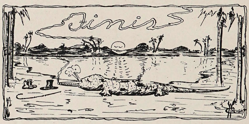 #vintage illustration #alligator #finis #vintage yearbook #yearbook #the end #illustration #eaten alive #1910s