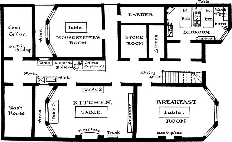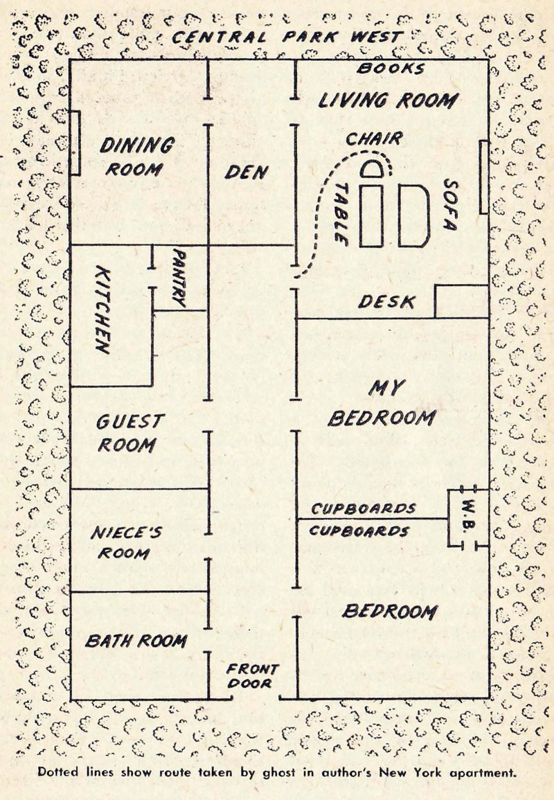 Play a variant of Clue / Cluedo with this floorplan and list of items that poltergeists moved during a two-week period (between the new moon of June 25th, 1923, and the full moon of July 9th), as reported in Quarterly Transactions of the British College of Psychic Science.