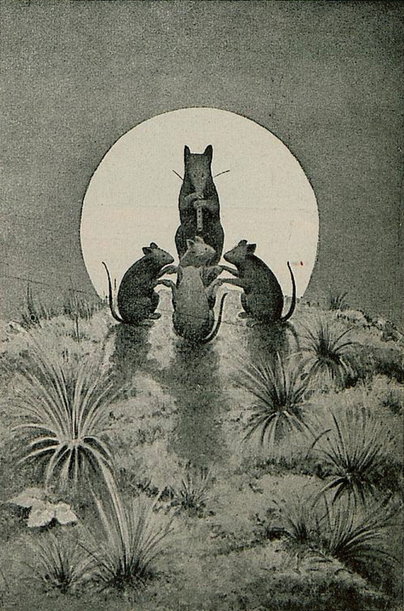 #vintage illustration #full moon #flute #mouse #musical animal #mice #1890s #illustration