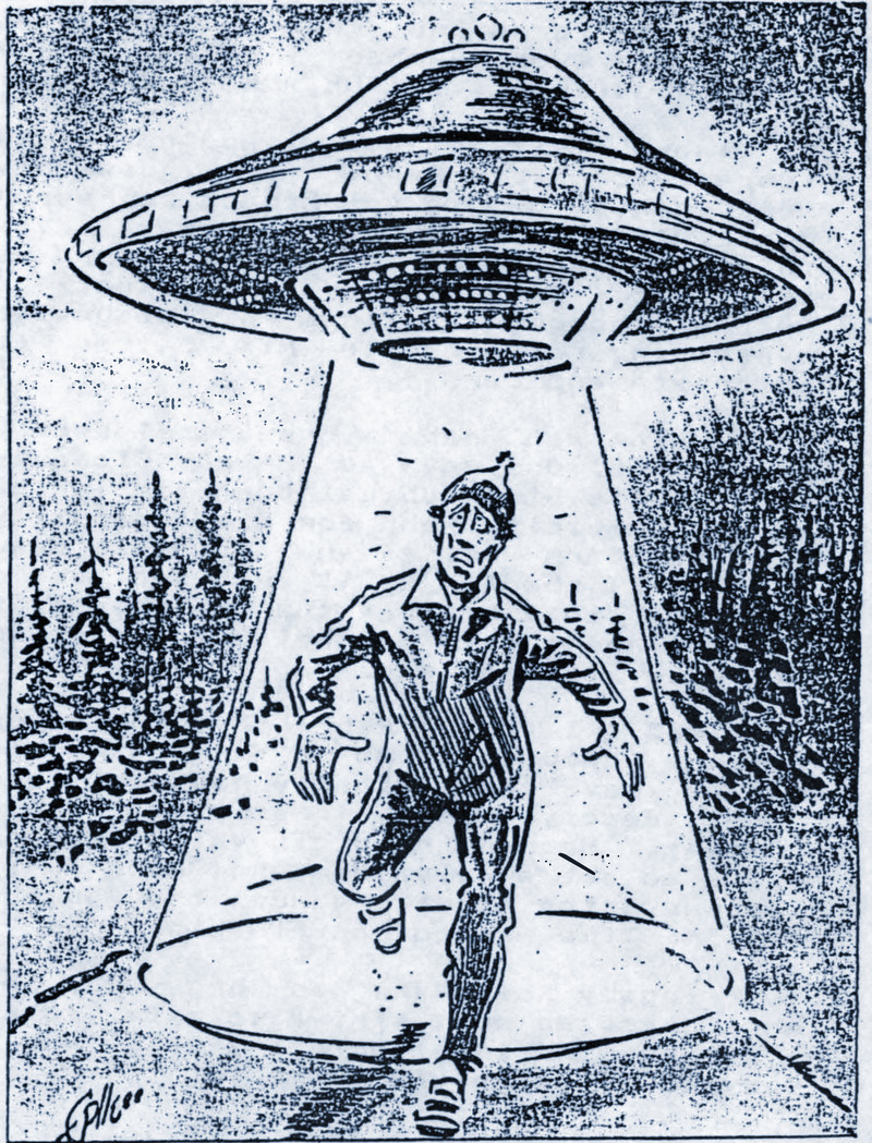 "They new too much about flying saucers."  From Flying Saucer News, 1958.