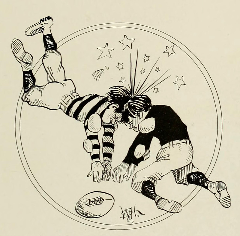 #vintage illustration #vintage yearbook #yearbook #seeing stars #illustration #football #1910s