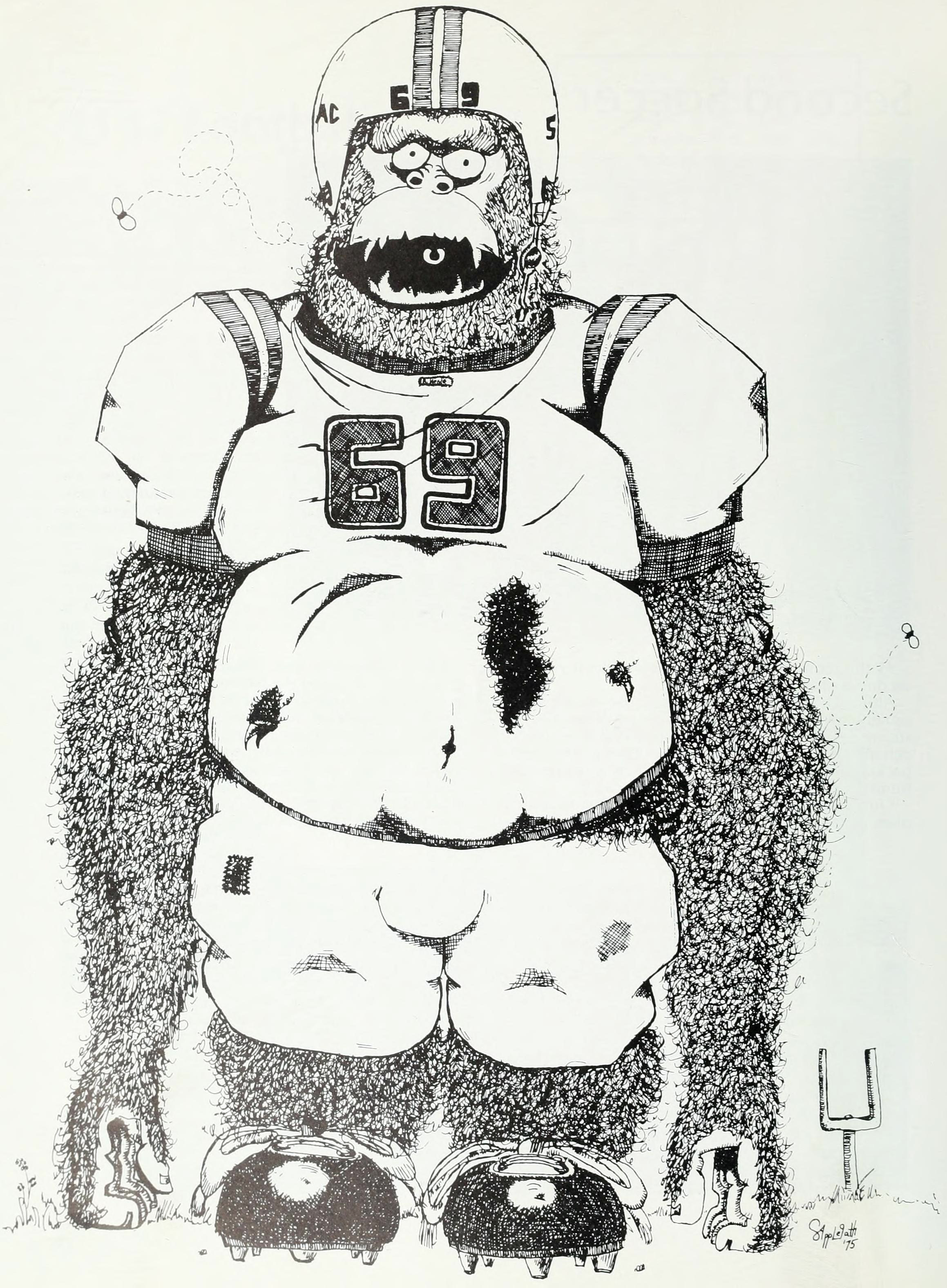 #vintage illustration #anthropomorphism #ape #vintage yearbook #yearbook #1970s #illustration #football