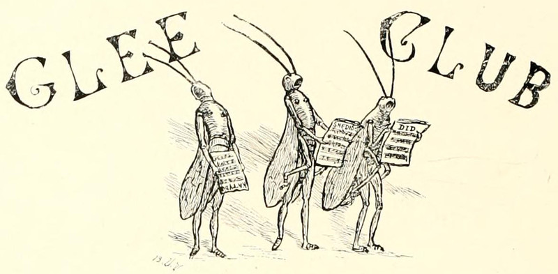 #vintage illustration #anthropomorphism #vintage yearbook #yearbook #cricket #bugs #glee club #musical insects