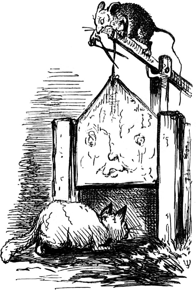 #vintage illustration #faces in things #tom and jerry #guillotine #cat and mouse #trap #animal trap #illustration