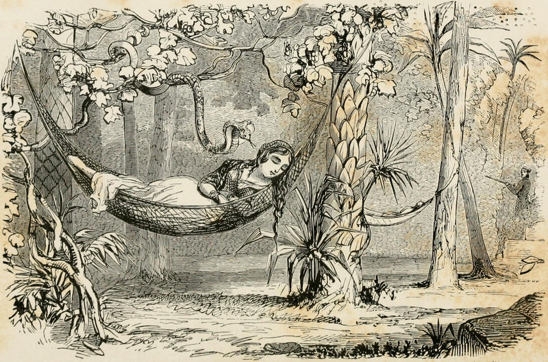 #vintage illustration #serpents #hammock #snakes #illustration #serpent handler