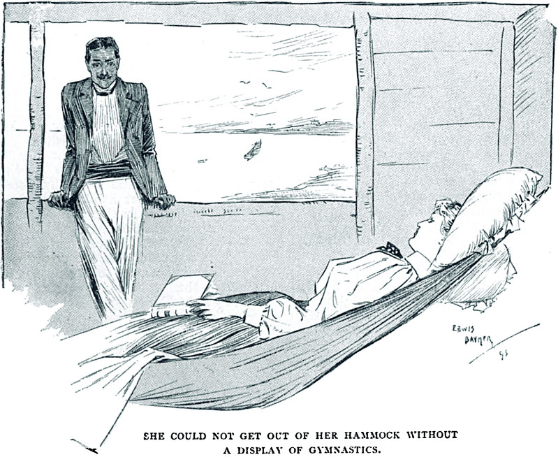 "She could not get out of her hammock without a display of gymnastics."  From English Illustrated, 1897.