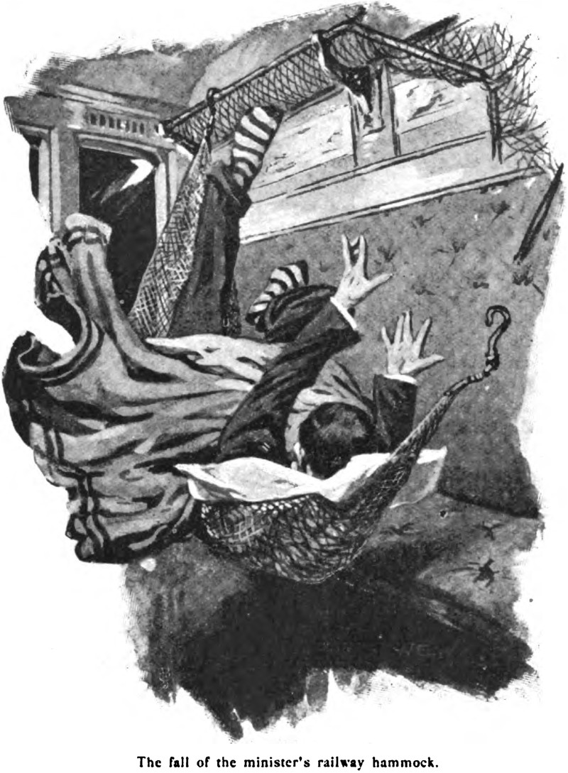"The fall of the minister's railway hammock," from London Magazine, 1903.