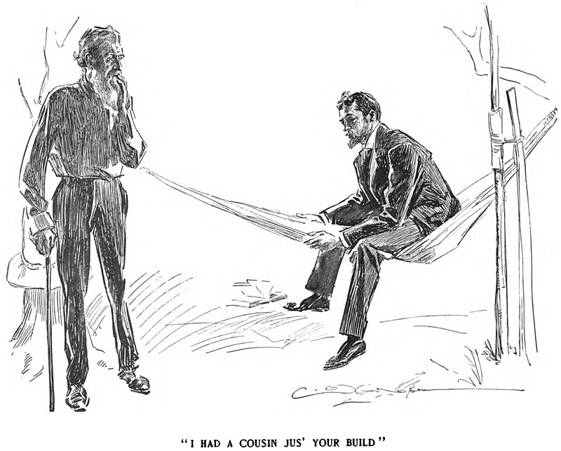 "I had a cousin jus' your build."  From The Bachelor's Christmas by Robert Grant, 1895.