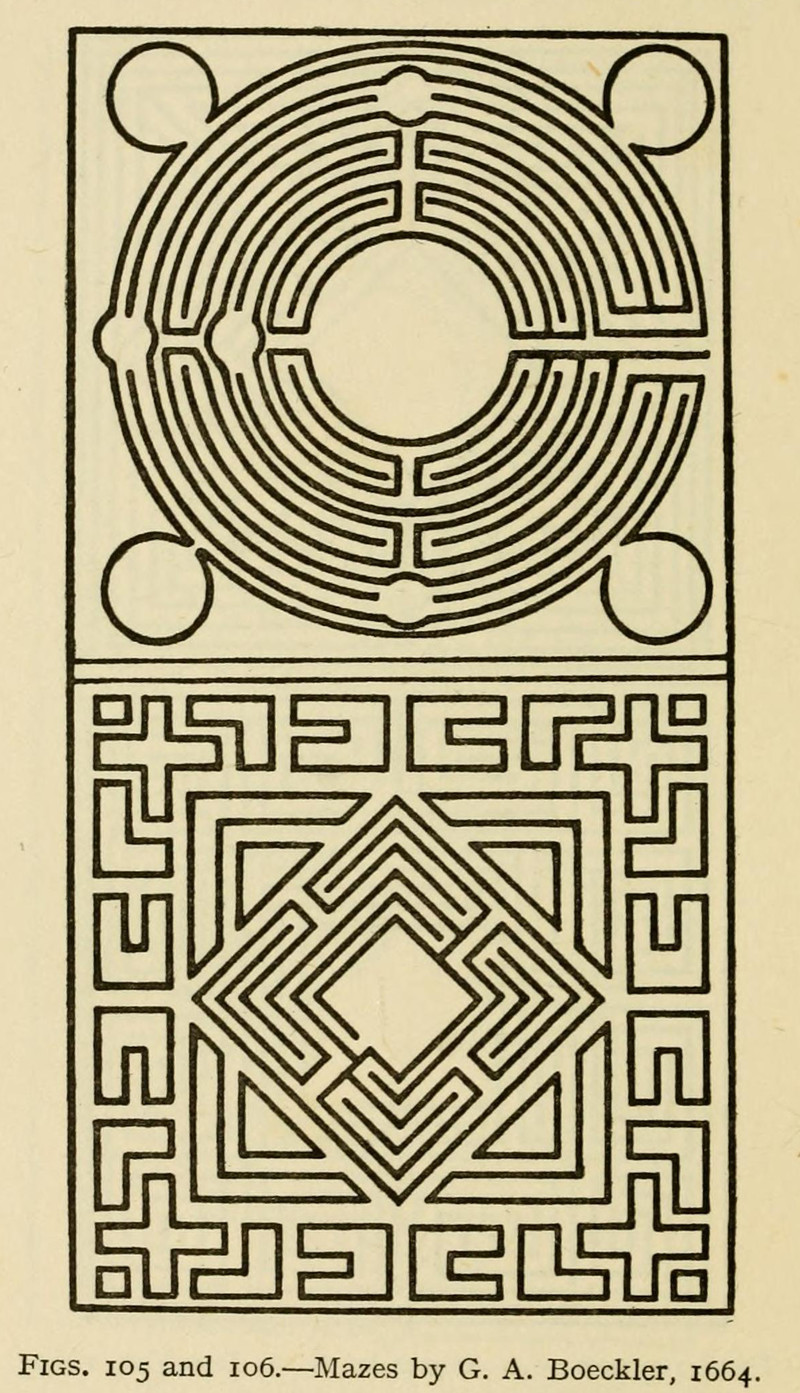 We're not sure that anyone's talking about how the original alien crop circles were garden labyrinths. From Mazes and Labyrinths by William Henry Matthews, 1922.
