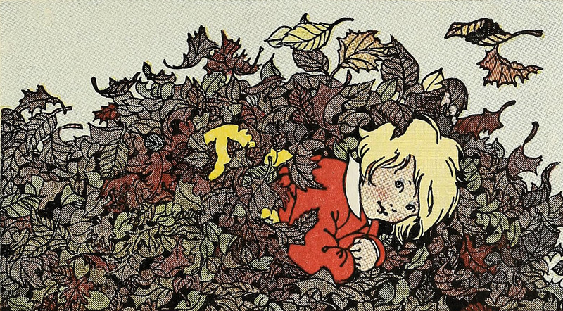 #vintage illustration #autumn #leaf #autumn leaves #hide and seek #1900s #illustration #hiding