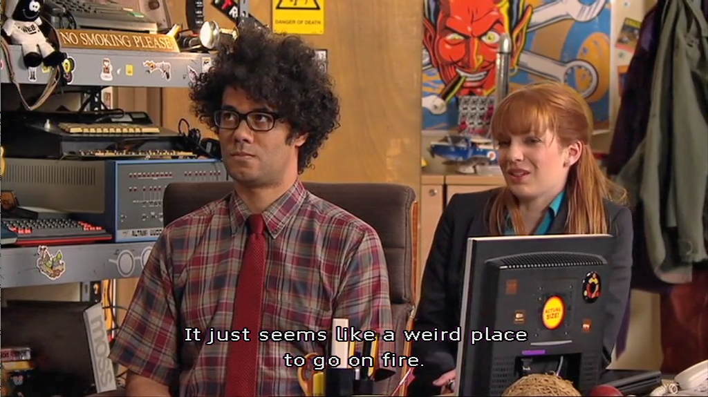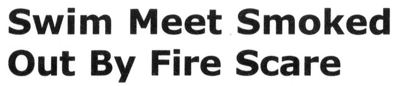 "Swim meet smoked out by fire scare" -- a precursor to the episode of The IT Crowd in which an aquatic park catches on fire in spite of all that water. From the University of Mary Washington's Bullet, 2005.