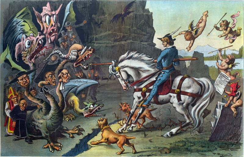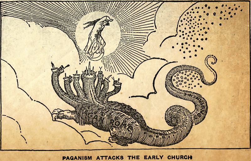 The seven-headed dragon. From Europa's Fairy Tales by Joseph Jacobs and illustrated by John Batten, 1916.