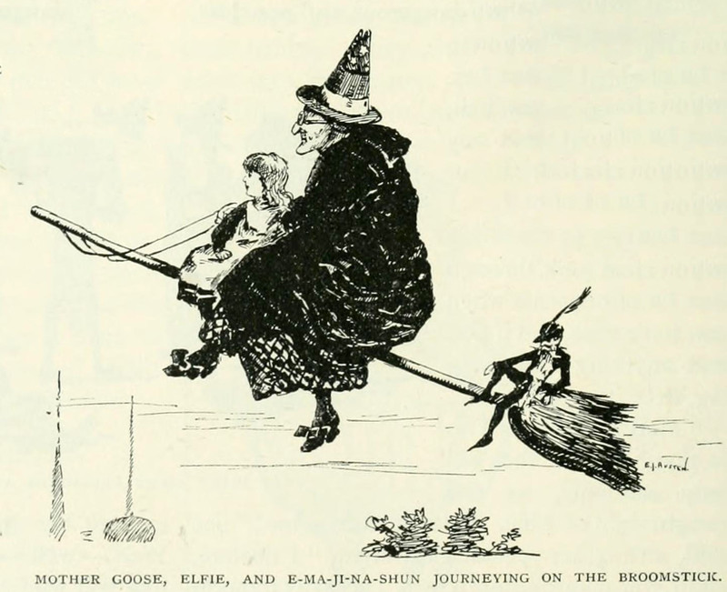 "I thought you were a book, Mother Goose." From Howtobegood Stories by Edith Cushing Derbyshire and illustrated by Noble Ives, 1918.