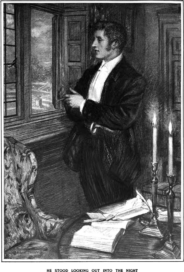 An illustration from a 1904 issue of Harper's magazine.  The caption reads: "He stood looking out into the night."