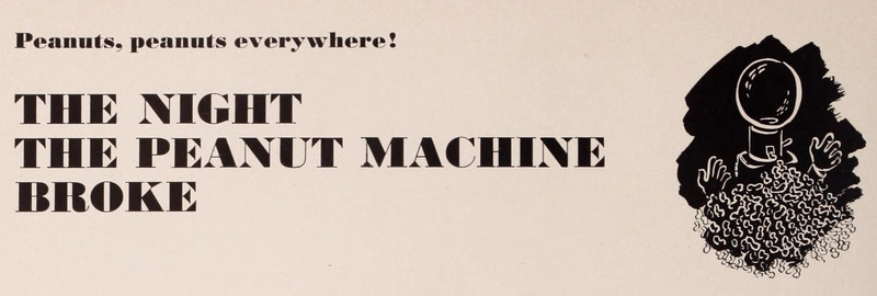 "Peanuts, peanuts everywhere!  The night the peanut machine broke."  From The Old Line, 1948.