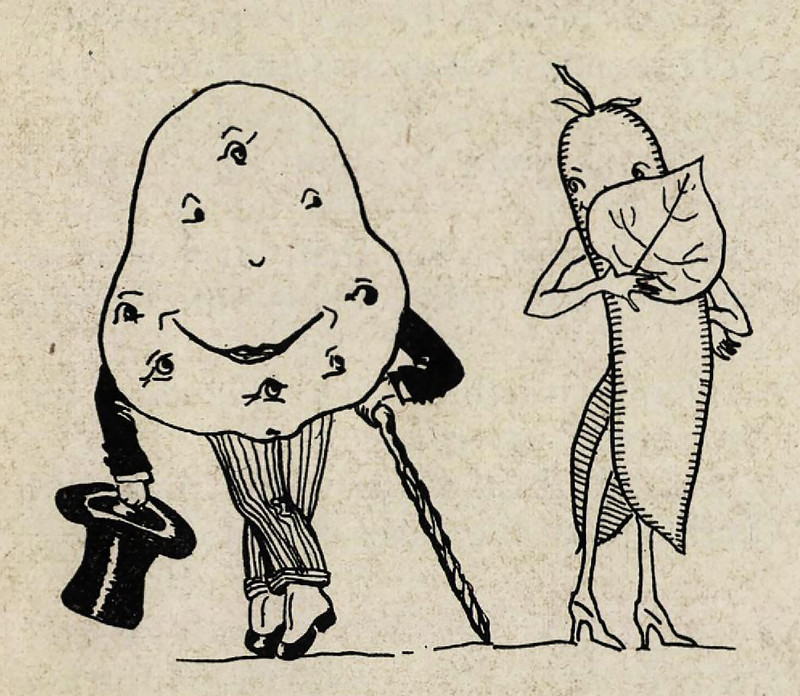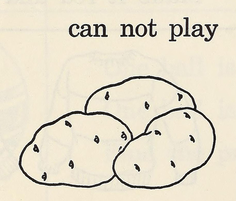 Twelve years before the invention of Mr. Potato Head, it was believed that potatoes couldn't play with you. Today, we know that potatoes can in fact play. From Think-and-Do Book to Accompany Fun with Dick and Jane, 1940.