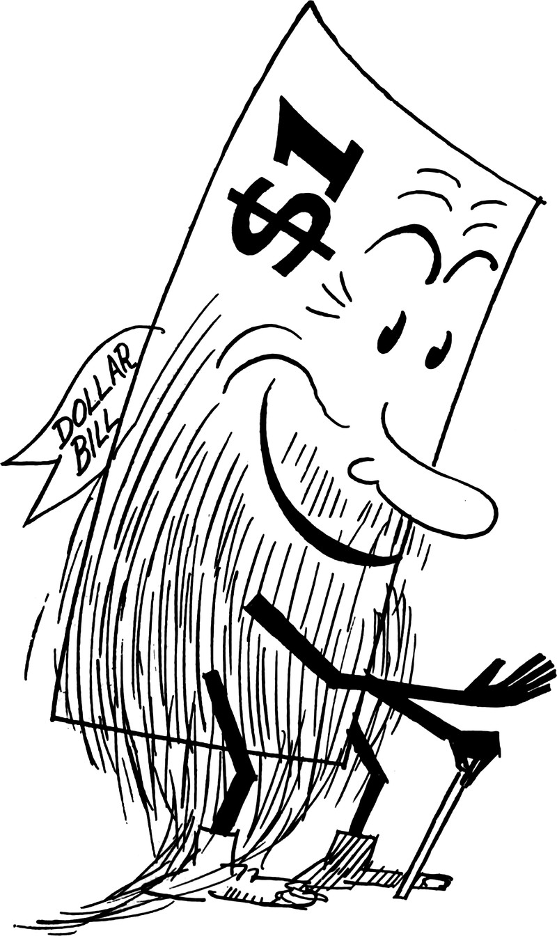 Here's a dollar bill that fell asleep for five years and grew a long beard. The artist was worried that "$1" wasn't enough to identify the bill, so he added a "Dollar Bill" banner. From The Saturday Evening Post, 1920.